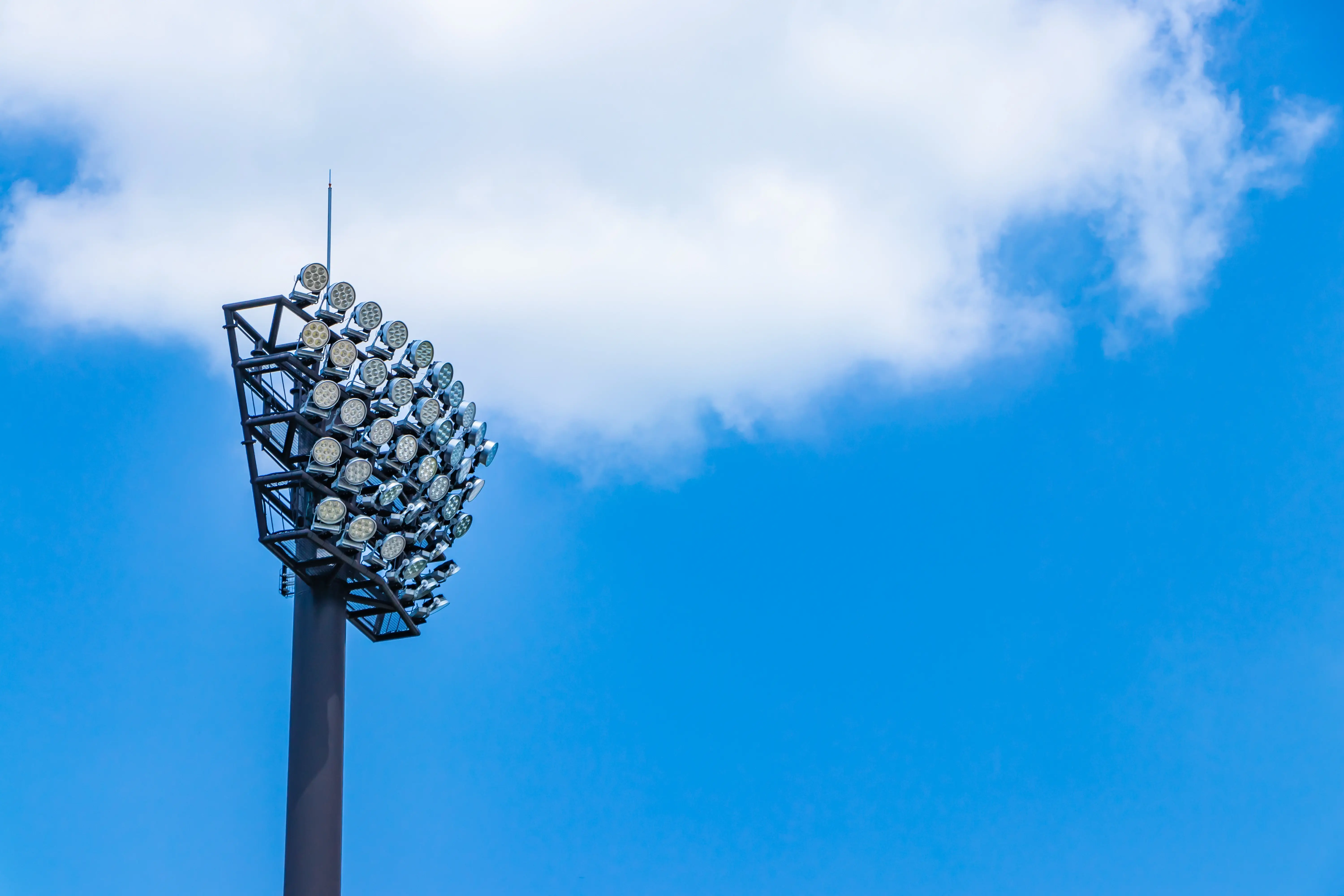 MSGI conçoit et fabrique des mâts d'éclairage haute performance pour les infrastructures sportives (stades, terrains de football, tennis) et les grands espaces (ports, aéroports). Nos mâts sont étudiés pour supporter des batteries de projecteurs puissantes tout en garantissant une stabilité parfaite.