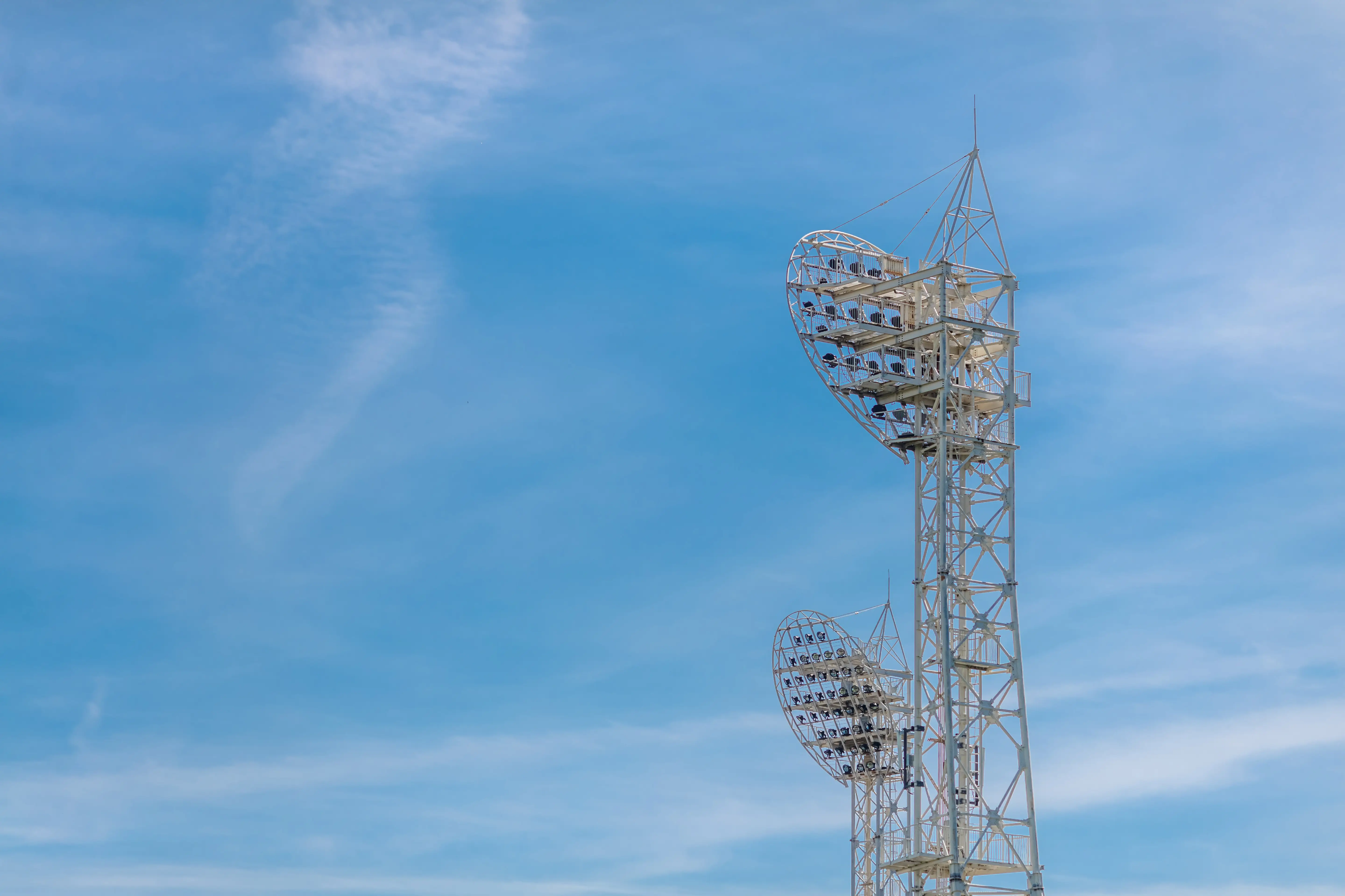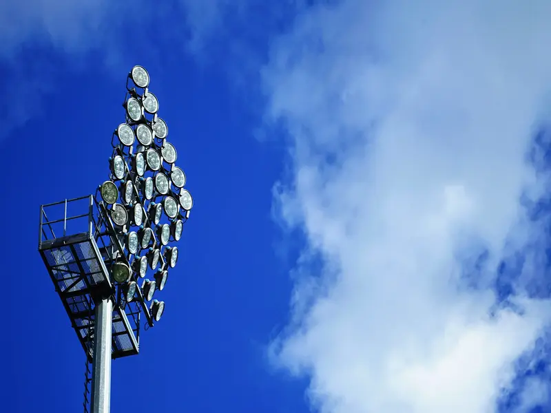 Solutions d'éclairage pour stades, complexes sportifs et grands espaces. Mâts tubulaires ou treillis avec plateformes de maintenance. Conception robuste.
